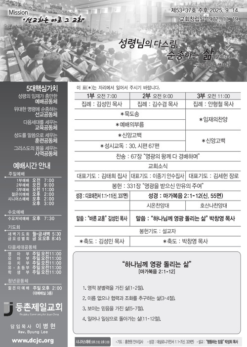 선교와 교육에 주력하여 성장하는 교회입니다. -