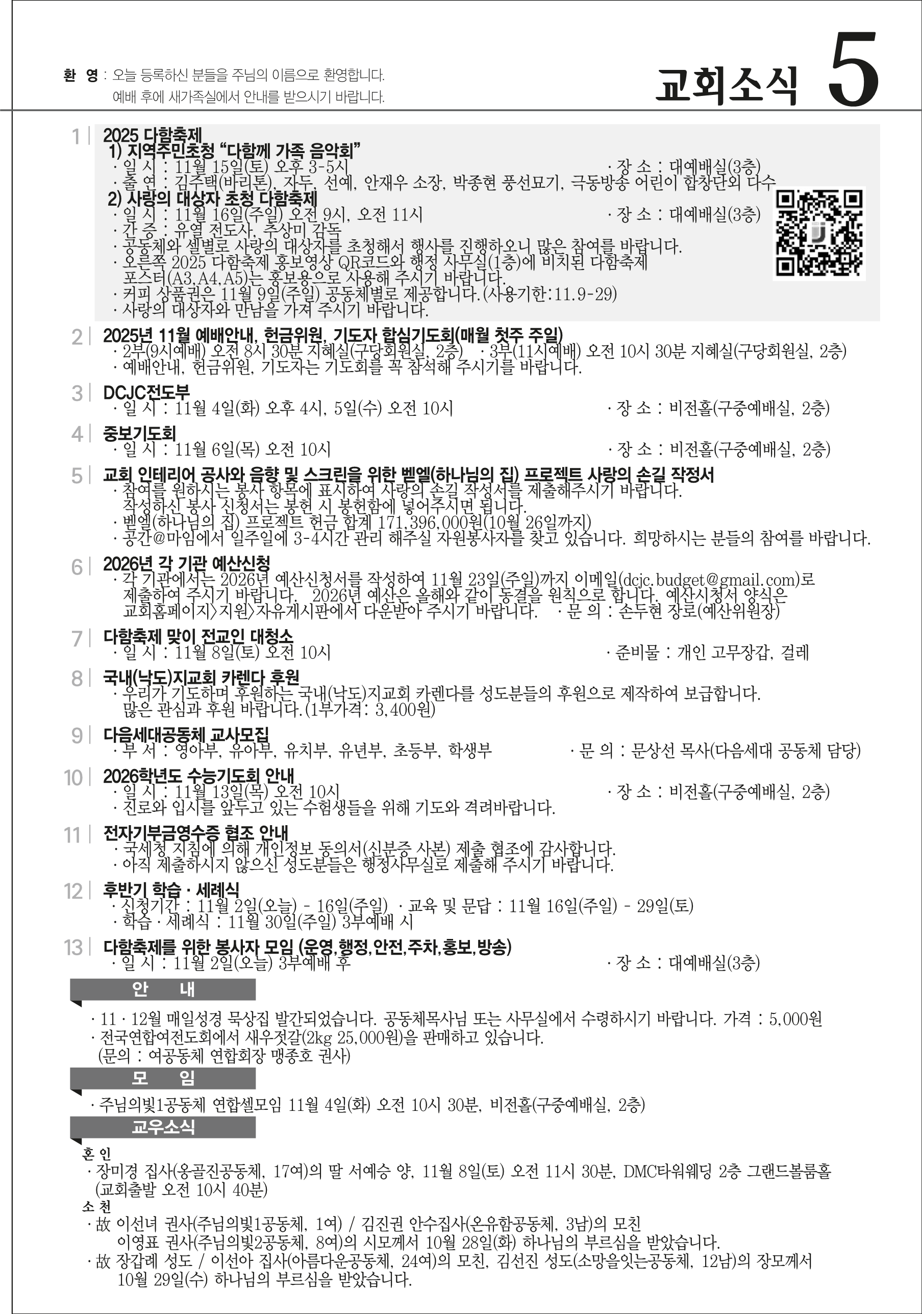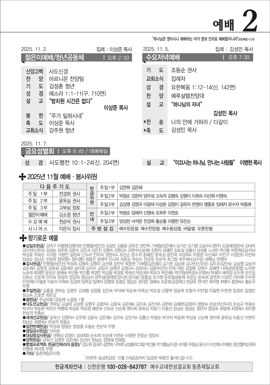 본문영역 교회소식 News 공지사항 주보보기 갤러리 새가족소개 교회소식주보보기 주보보기 11월 2일 주보 작성자 : 행정간사 작성일 : 2025-10-31 조회수 : 407 첨부파일 7개 11-02_등촌제일교회_주보_신예향_(10)_1.png11-02_등촌제일교회_주보_신예향_(10)_2.png11-02_등촌제일교회_주보_신예향_(10)_5.png11-02_등촌제일교회_주보_신예향_(10)_3.png11-02_등촌제일교회_주보_신예향_(10)_6.png11-02_등촌제일교회_주보_신예향_(10)_4.png11-02_등촌제일교회_주보_신예향_(10).pdf 목록으로