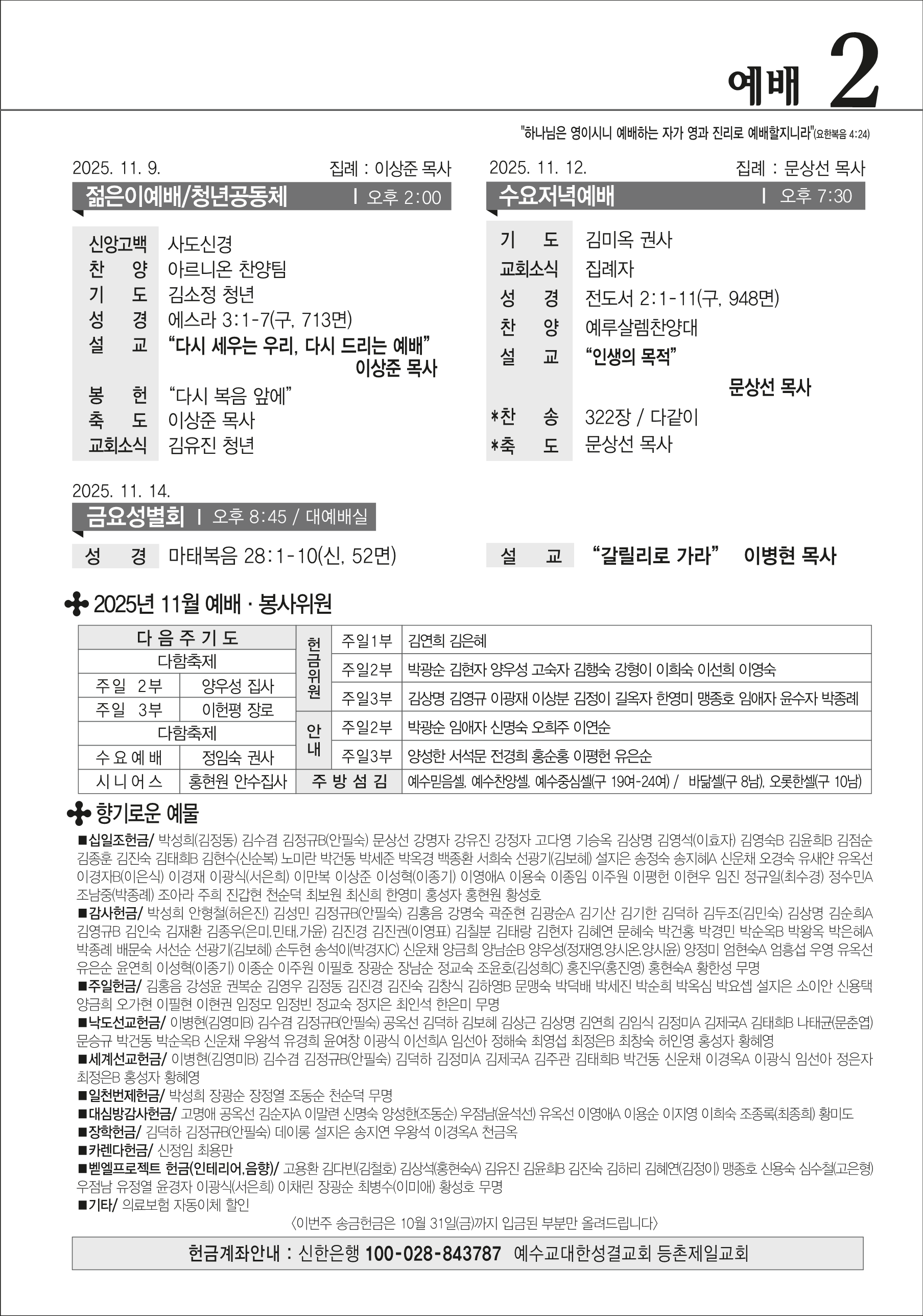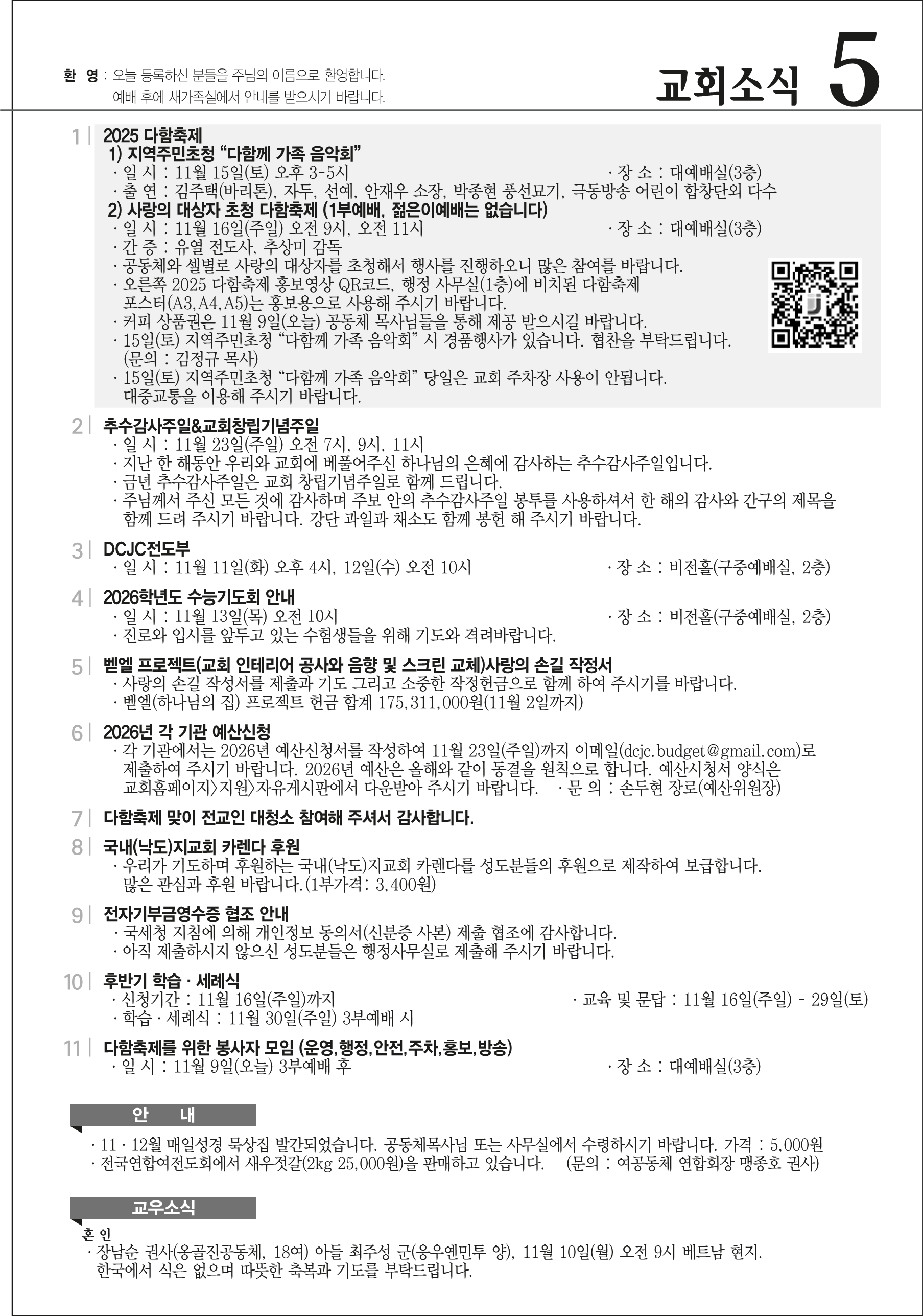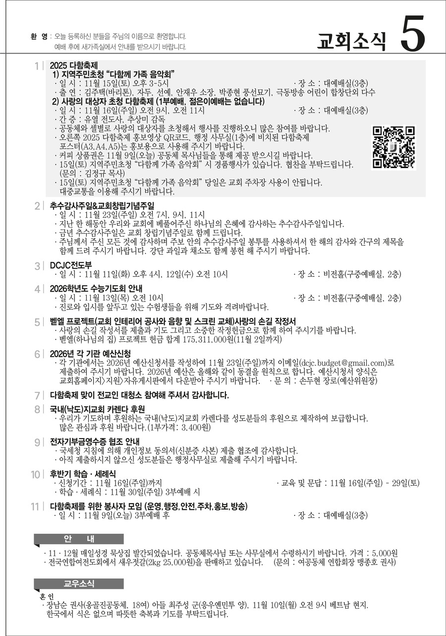 본문영역 교회소식 News 공지사항 주보보기 갤러리 새가족소개 교회소식주보보기 주보보기 11월 9일 주보 작성자 : 행정간사 작성일 : 2025-11-07 조회수 : 303 첨부파일 7개 11-09_등촌제일교회_주보_신예향_(11)_1.png11-09_등촌제일교회_주보_신예향_(11)_2.png11-09_등촌제일교회_주보_신예향_(11)_3.png11-09_등촌제일교회_주보_신예향_(11)_4.png11-09_등촌제일교회_주보_신예향_(11)_5.png11-09_등촌제일교회_주보_신예향_(11)_6.png11-09_등촌제일교회_주보_신예향_(11).pdf 목록으로
