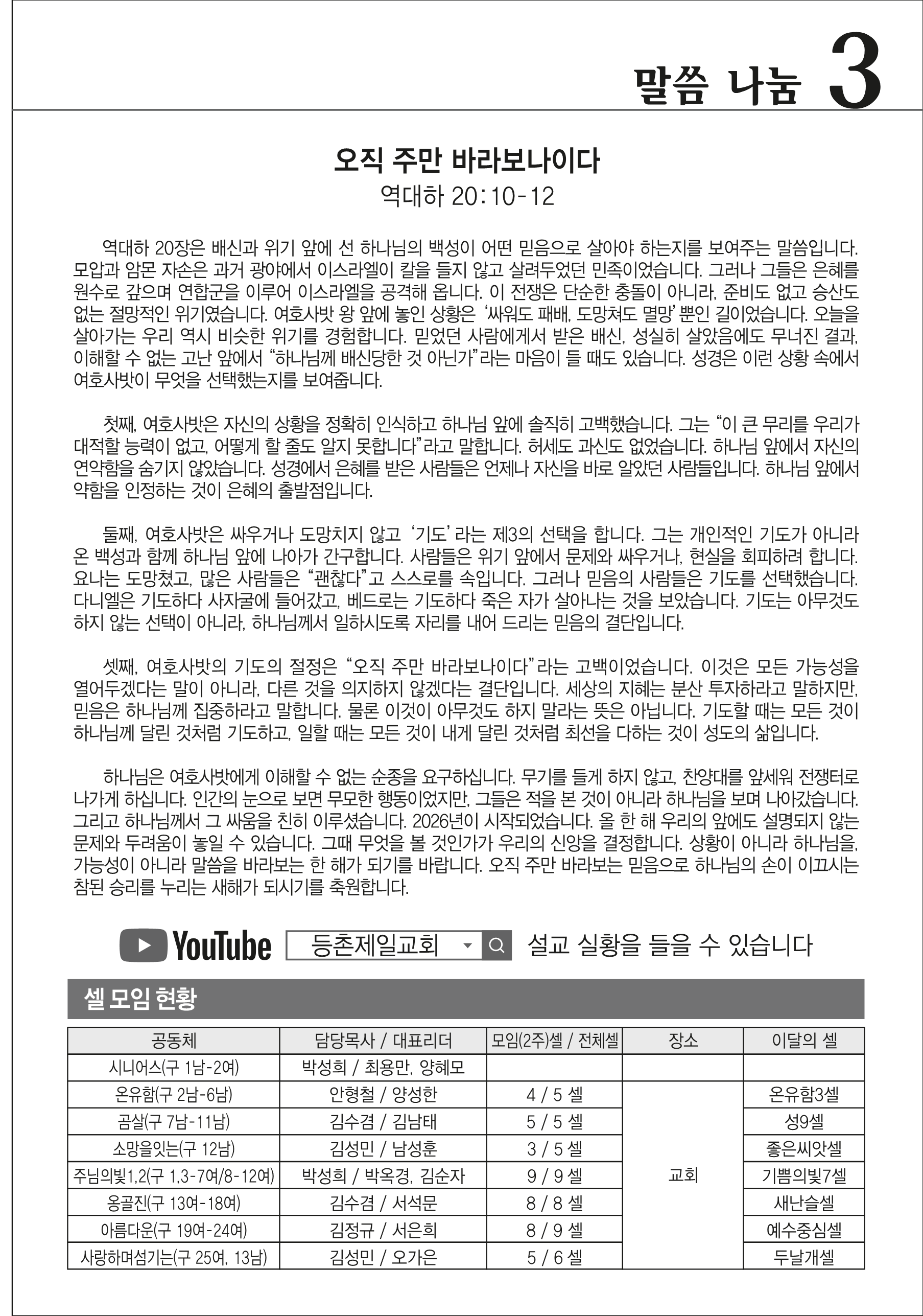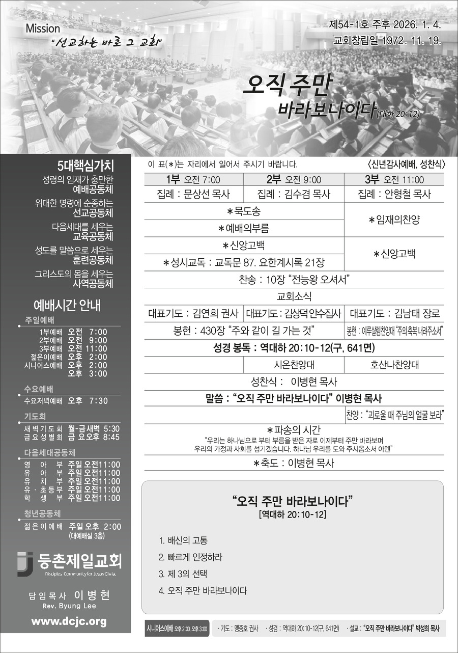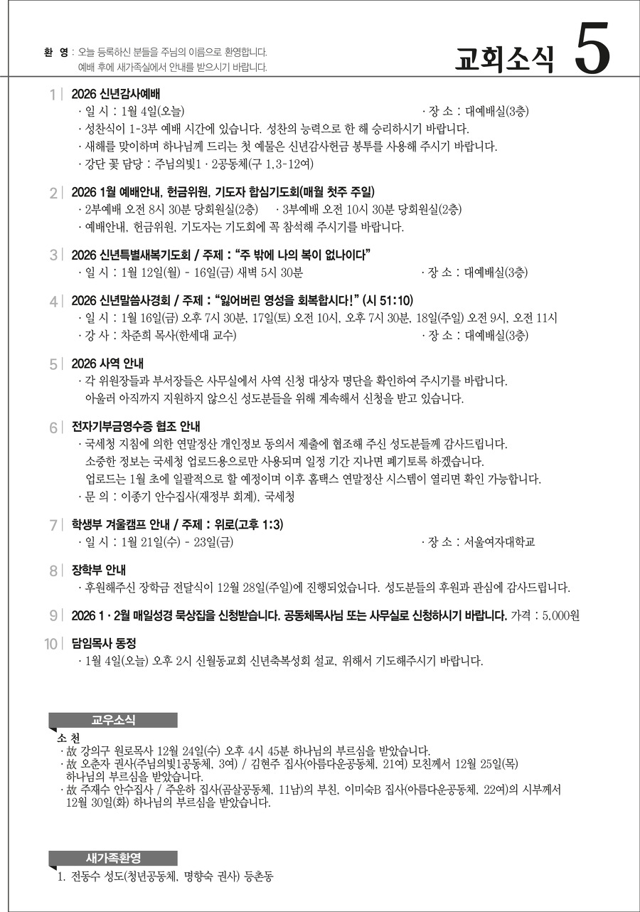 본문영역 교회소식 News 공지사항 주보보기 갤러리 새가족소개 교회소식주보보기 주보보기 2026년 1월 4일 주보 작성자 : 행정간사 작성일 : 2025-12-31 조회수 : 409 첨부파일 7개 01-04_등촌제일교회_주보_신예향_(11)_1.png01-04_등촌제일교회_주보_신예향_(11)_2.png01-04_등촌제일교회_주보_신예향_(11)_3.png01-04_등촌제일교회_주보_신예향_(11)_4.png01-04_등촌제일교회_주보_신예향_(11)_5.png01-04_등촌제일교회_주보_신예향_(11)_6.png01-04_등촌제일교회_주보_신예향_(11).pdf 목록으로