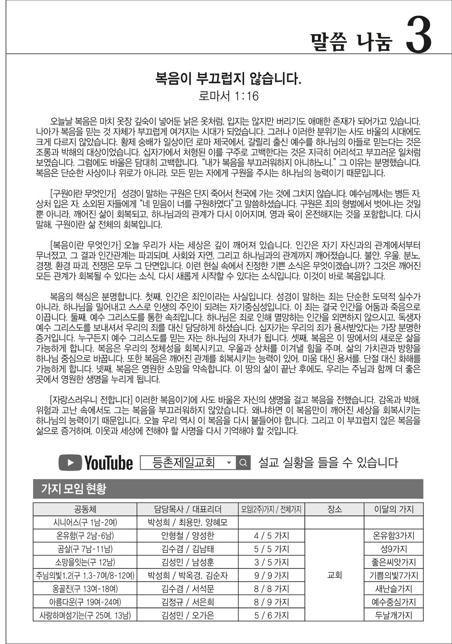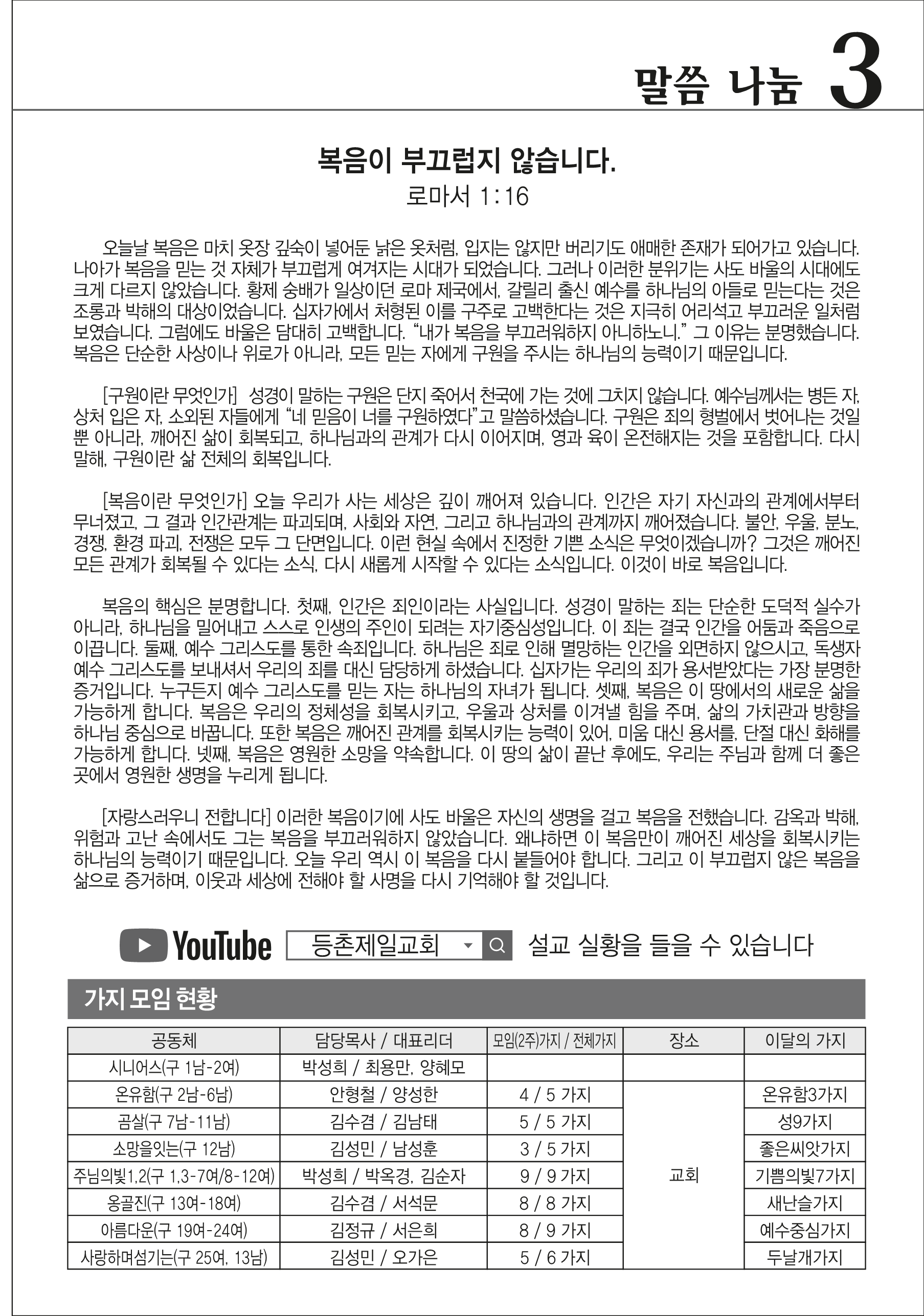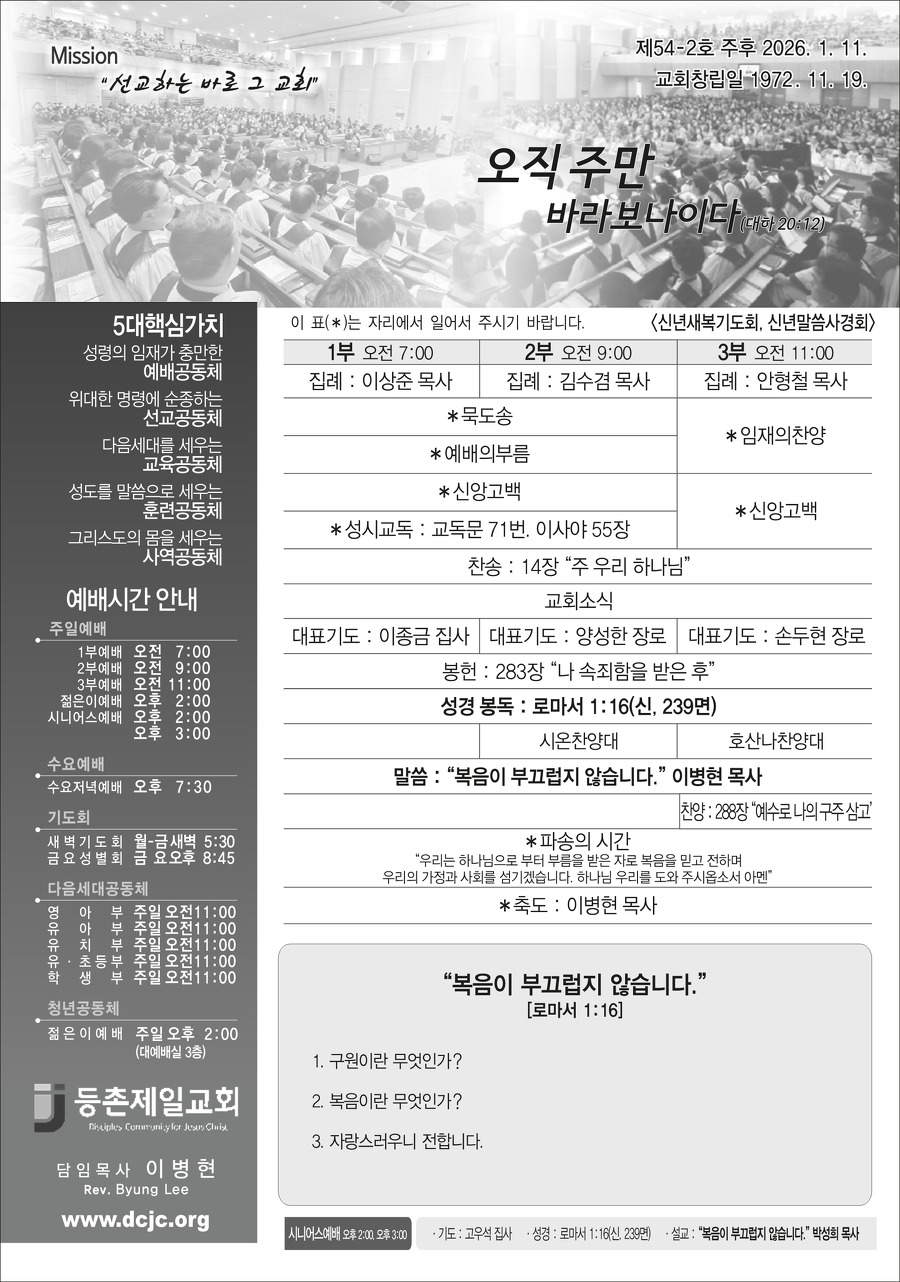 본문영역 교회소식 News 공지사항 주보보기 갤러리 새가족소개 교회소식주보보기 주보보기 1월 11일 주보 작성자 : 행정간사 작성일 : 2026-01-09 조회수 : 408 첨부파일 7개 01-11_등촌제일교회_주보_신예향_(6)_1.png01-11_등촌제일교회_주보_신예향_(6)_2.png01-11_등촌제일교회_주보_신예향_(6)_3.png01-11_등촌제일교회_주보_신예향_(6)_4.png01-11_등촌제일교회_주보_신예향_(6)_5.png01-11_등촌제일교회_주보_신예향_(6)_6.png01-11_등촌제일교회_주보_신예향_(6).pdf 목록으로