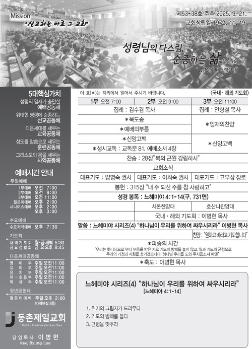 선교와 교육에 주력하여 성장하는 교회입니다. -