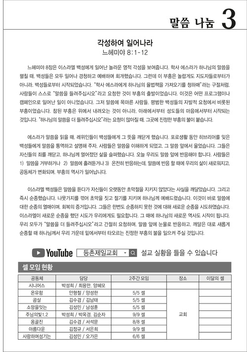여러분과 여러분의 가정에 하나님의 평강이 넘치시길 기원합니다.